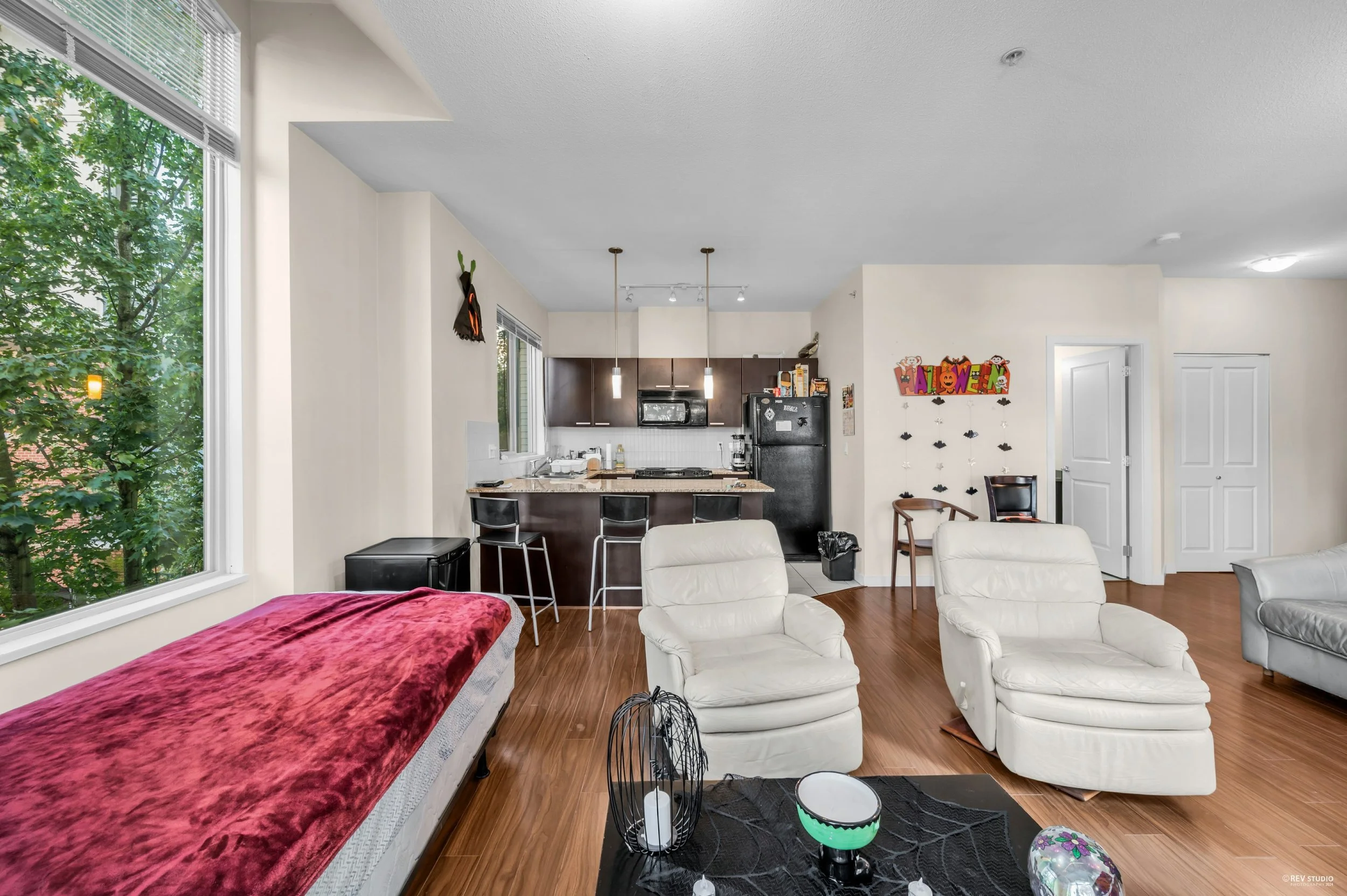 Surrey市中心超闊落652呎1房 10呎樓底 U形廚房 多窗光猛