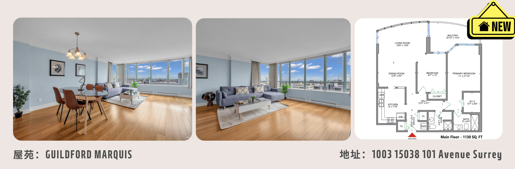 今次到Metrotown核心地段,看一個寬敞的955呎角落單位,特點是: