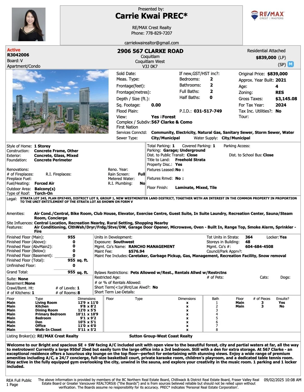 567 Clarke + Como 設有冷氣,有豐富會所設施,以及24小時禮賓服務。大樓位於Burquitlam天車站對面,距離超市、餐廳、商場極近,方便前往Burnaby & Downtown。
