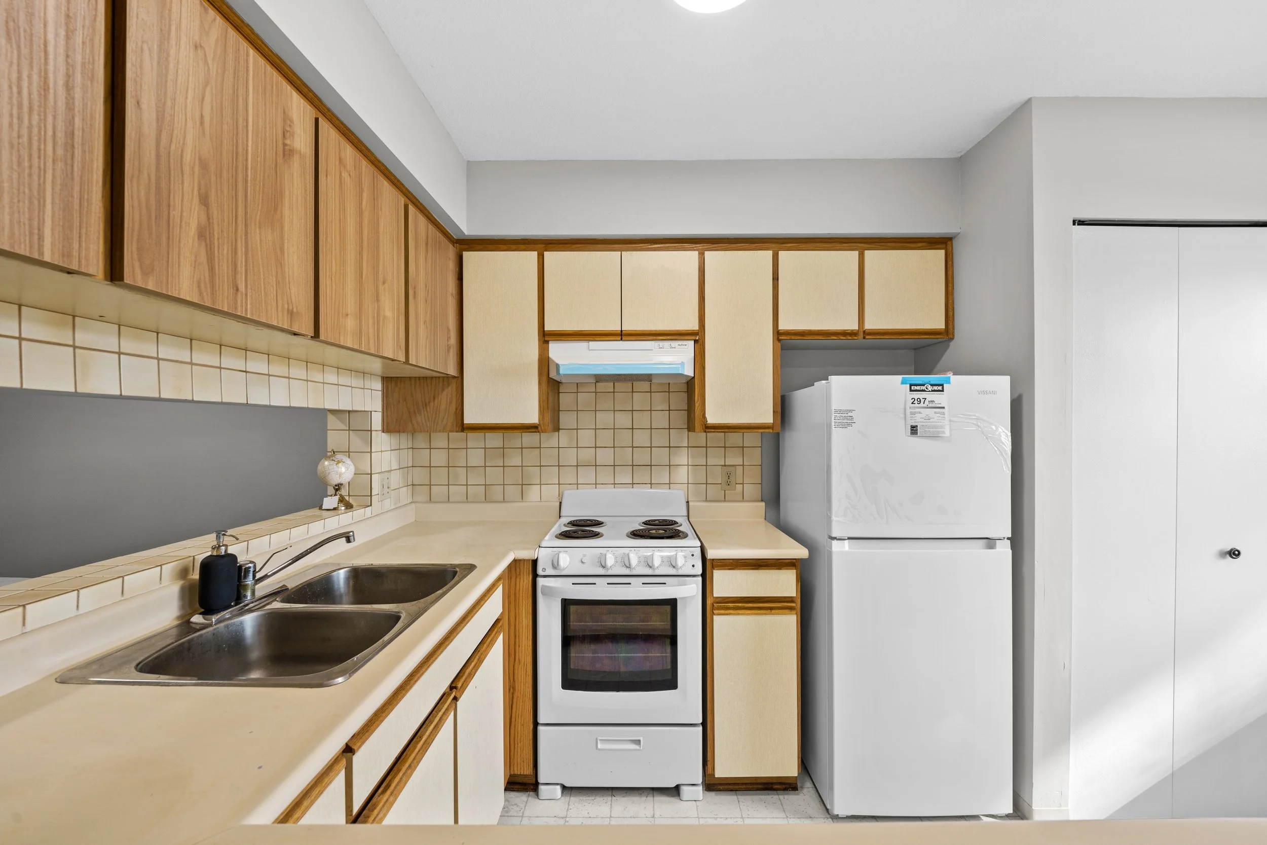 廚房設大量儲物櫃 配備雙sink盤 全新雪櫃+抽油煙機