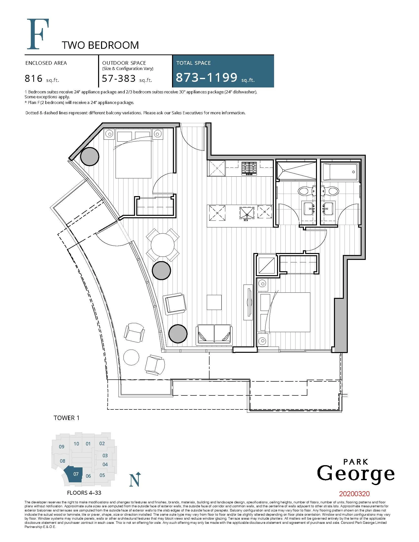 Surrey市中心Park George:高層27樓靚景2房2廁
