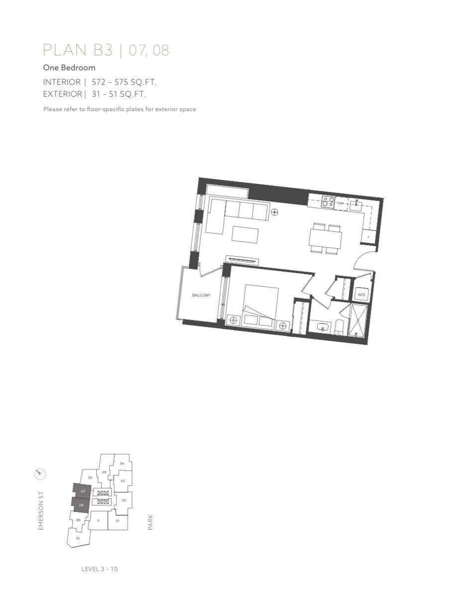 Burquitlam站全新大樓Myriad:4樓575呎1房1廁